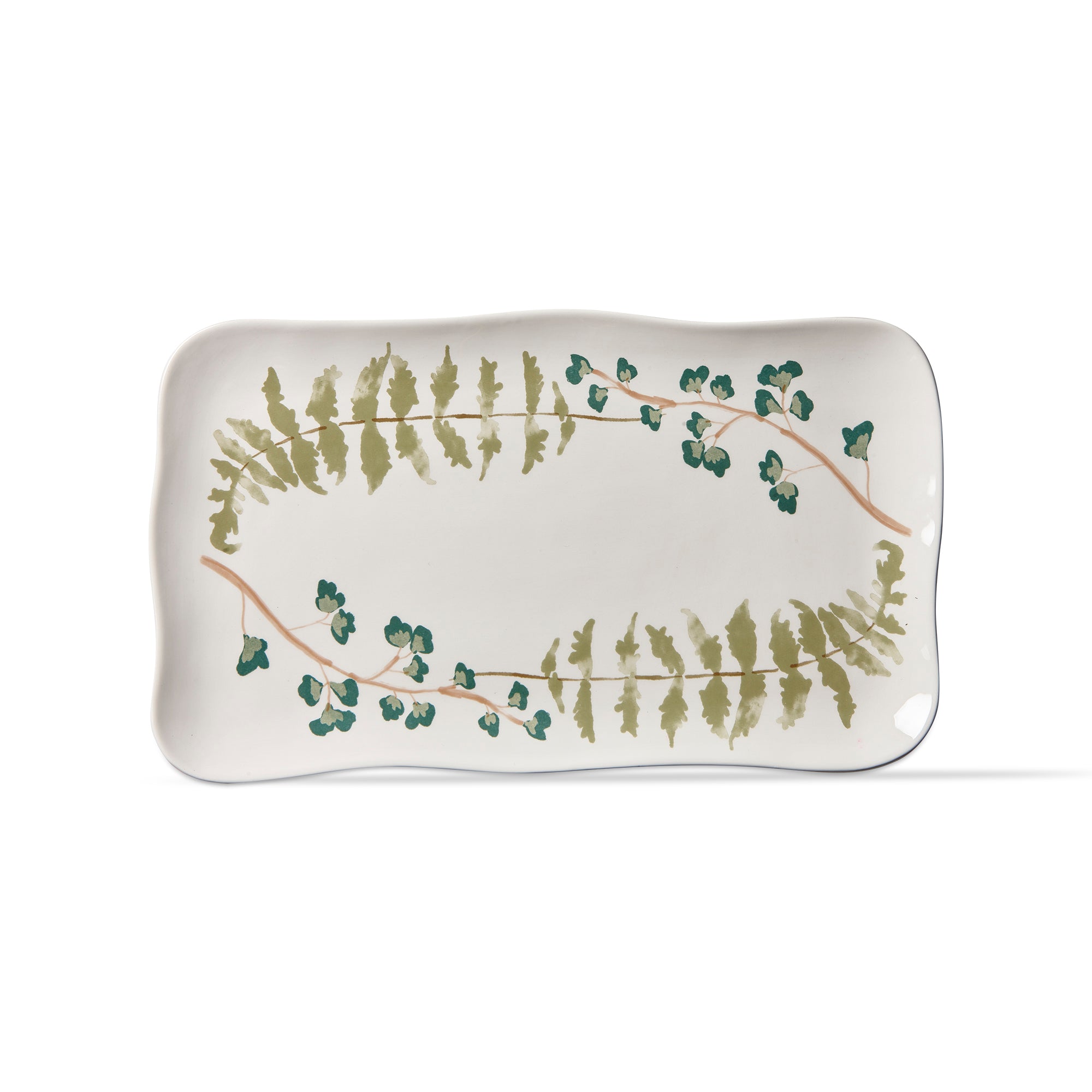 It's all in the details! Serve up appetizers and hors d'oeuvres alongside this beautiful forest inspired design. Both functional as decorative, this platter features Earthenware construction with organically shaped body and plant decal design.
