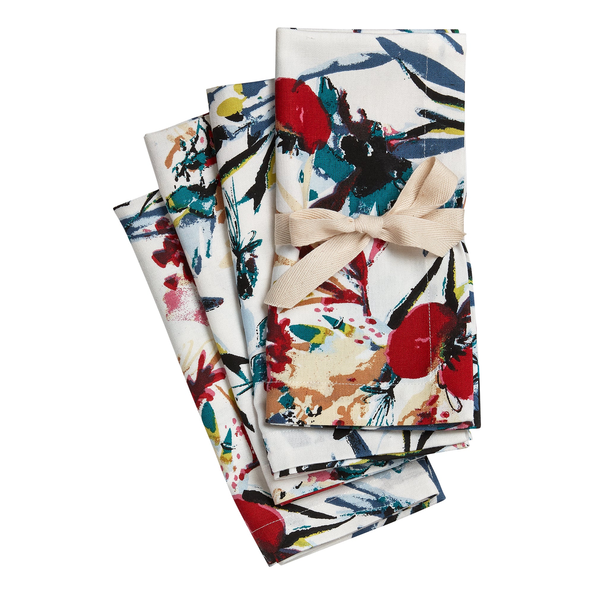 Complete your tablescape with the perfect dinner napkin. each set includes 4 napkins made from 100% cotton with a hand-screen printed design made with water-based inks. napkins feature a 1 inch hem.