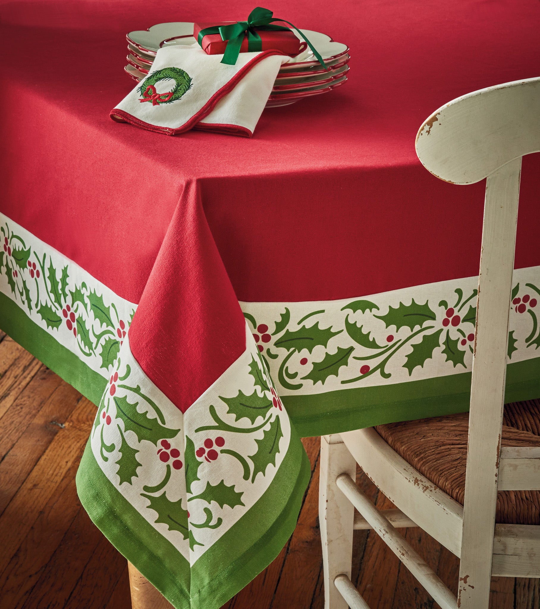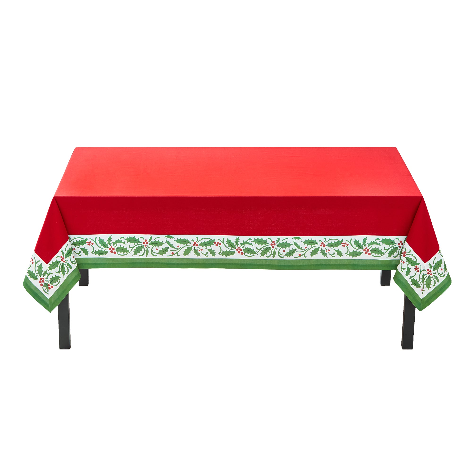 Christmastime tablecloth covers the table in festive pattern for easy holiday hosting and instantly pulls together mixed dishes and serveware. Hand painted details add warmth while its versatile design makes styling simple. Sized for layered displays and pairs beautifully with seasonal greenery and décor. View all items in Wonderful Christmastime.