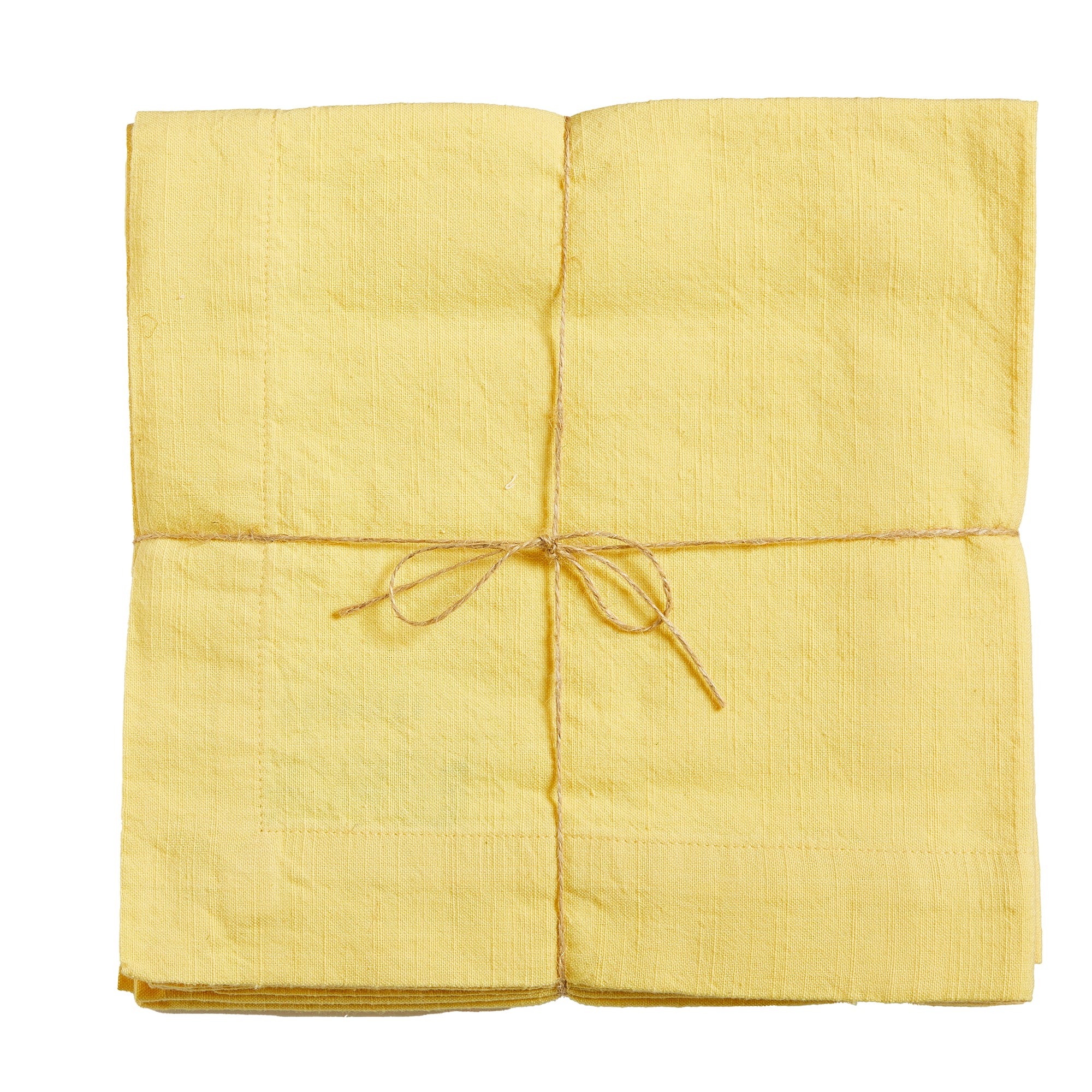 Our everyday yellow yarn-dyed slub weave napkin set is a stylish and functional addition to your tablescaping essentials. Extremely versatile for casual or elegant affairs. Features mitered corners and a silicone wash. 100% cotton.