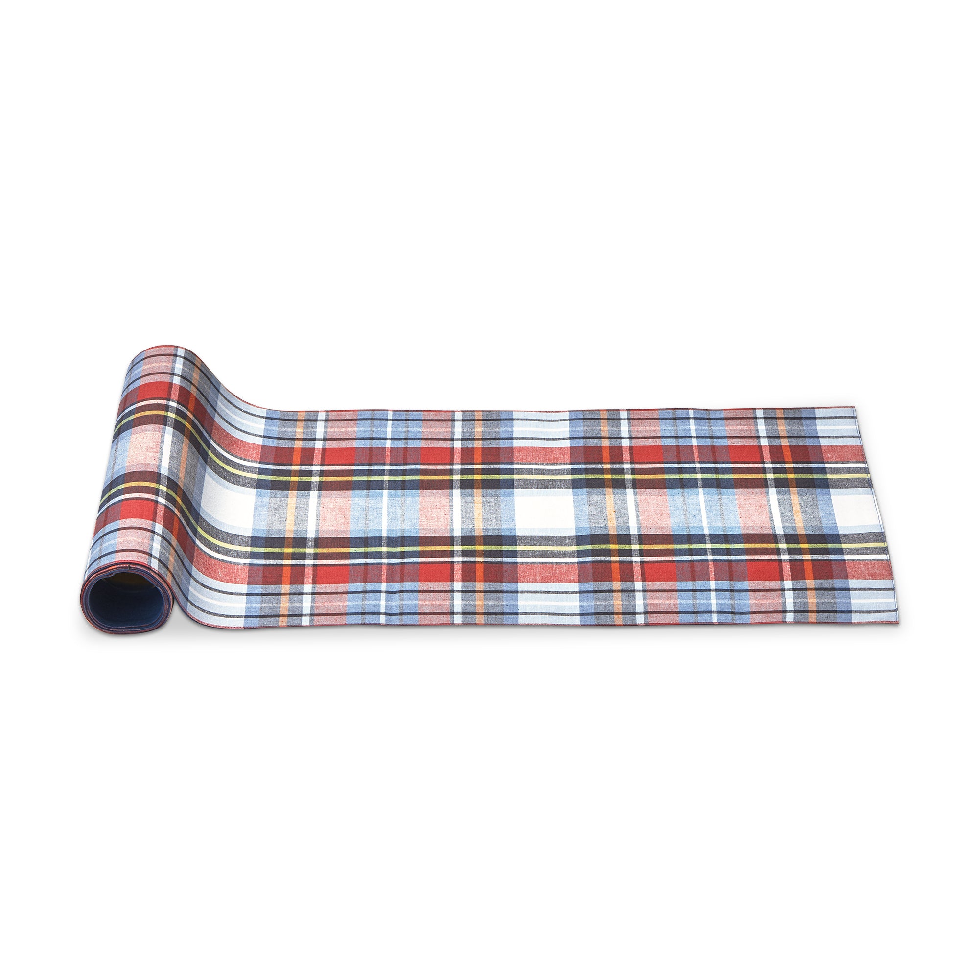 A stylish and functional addition to your tablescaping essentials this season! accent dining setups beautifully, incorporating other decorative pieces and tableware from tag. 100% cotton construction, this runner features yarn dyed woven plaid, solid dyed to match backing. silicone washed.