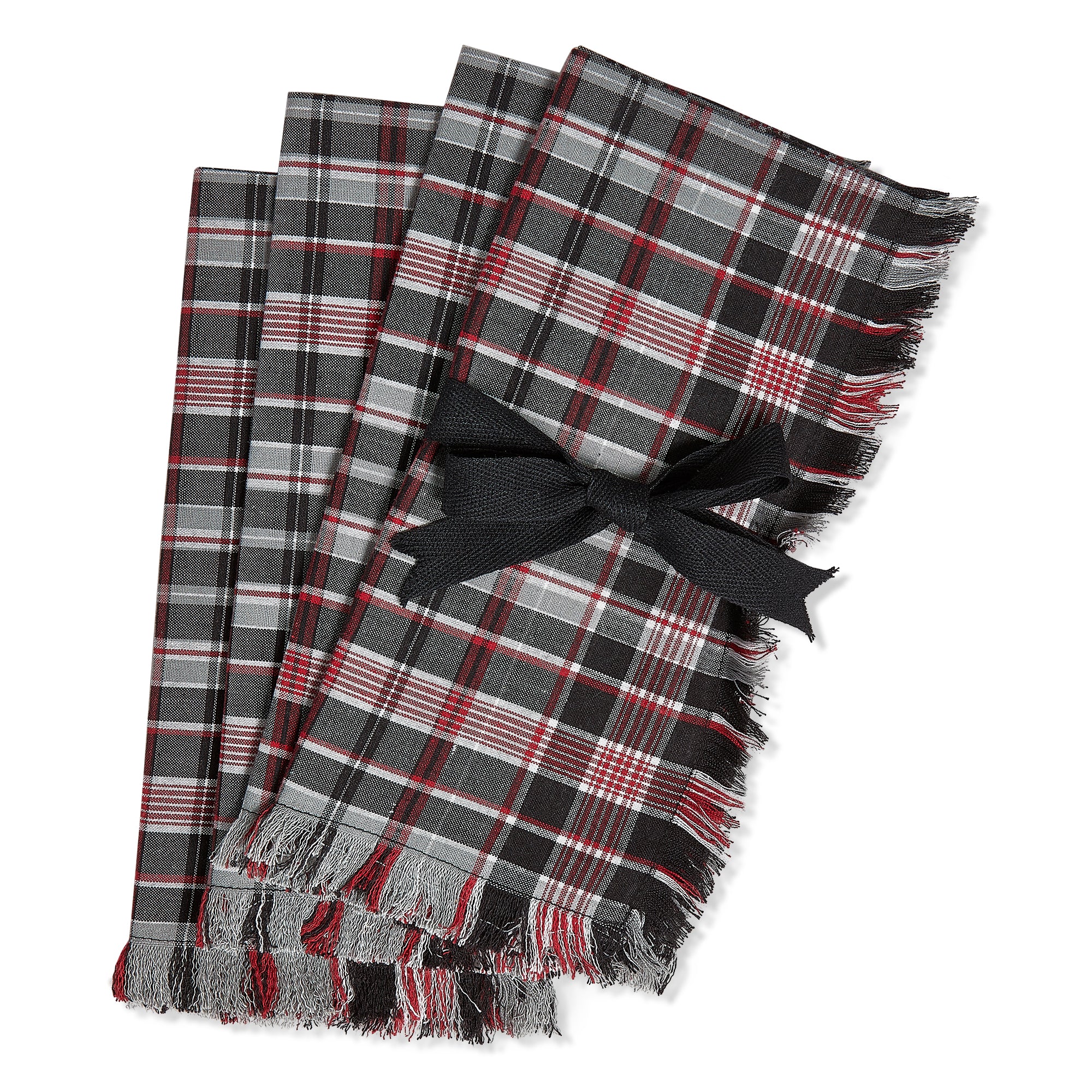 Soft and absorbent, cloth napkins are a stylish and functional addition to your tablescaping essentials this season. featuring 100% cotton construction with woven chambray plaid and self fringe, these napkins are the perfect complement to your holiday decor. the resuable alternative to single-use paper napkins, they are perfect for use all year round and during the holiday season. set includes: 4 each of 1 hand screen printed design.