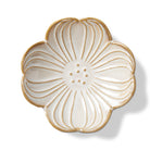 Cornus Flower Trinket Dish in white stoneware with four petal dogwood styling and dotted center. Works as a ring dish, spoon rest for tea, or a tiny soap perch. View all items in Trinket Trove.
