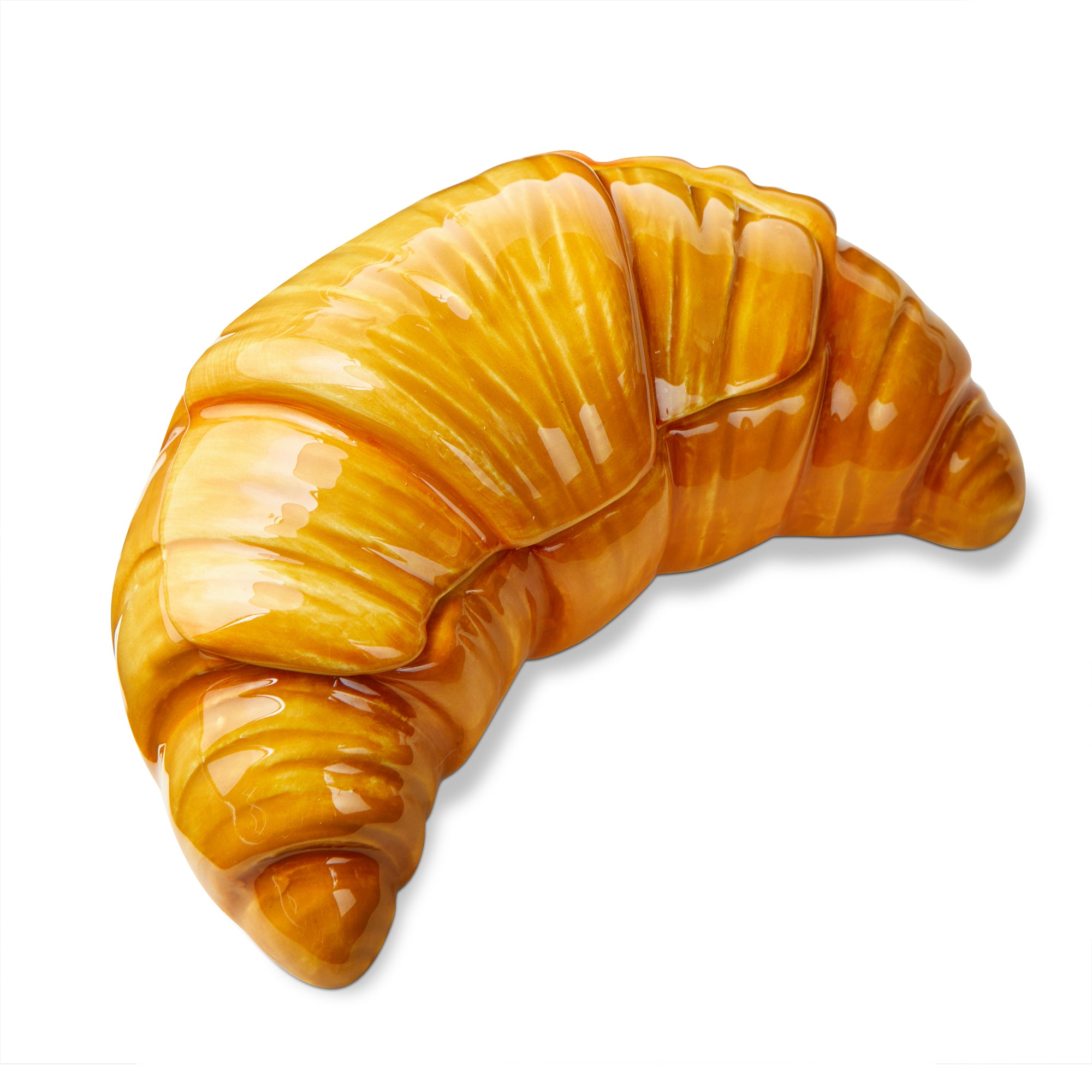 The Croissant Lidded Trinket Box looks like a golden bakery treat crafted in glossy ceramic. Keep rings by the kitchen sink, hide wrapped mints, or use it as a whimsical accent on a breakfast nook shelf. View all items in Trinket Trove.