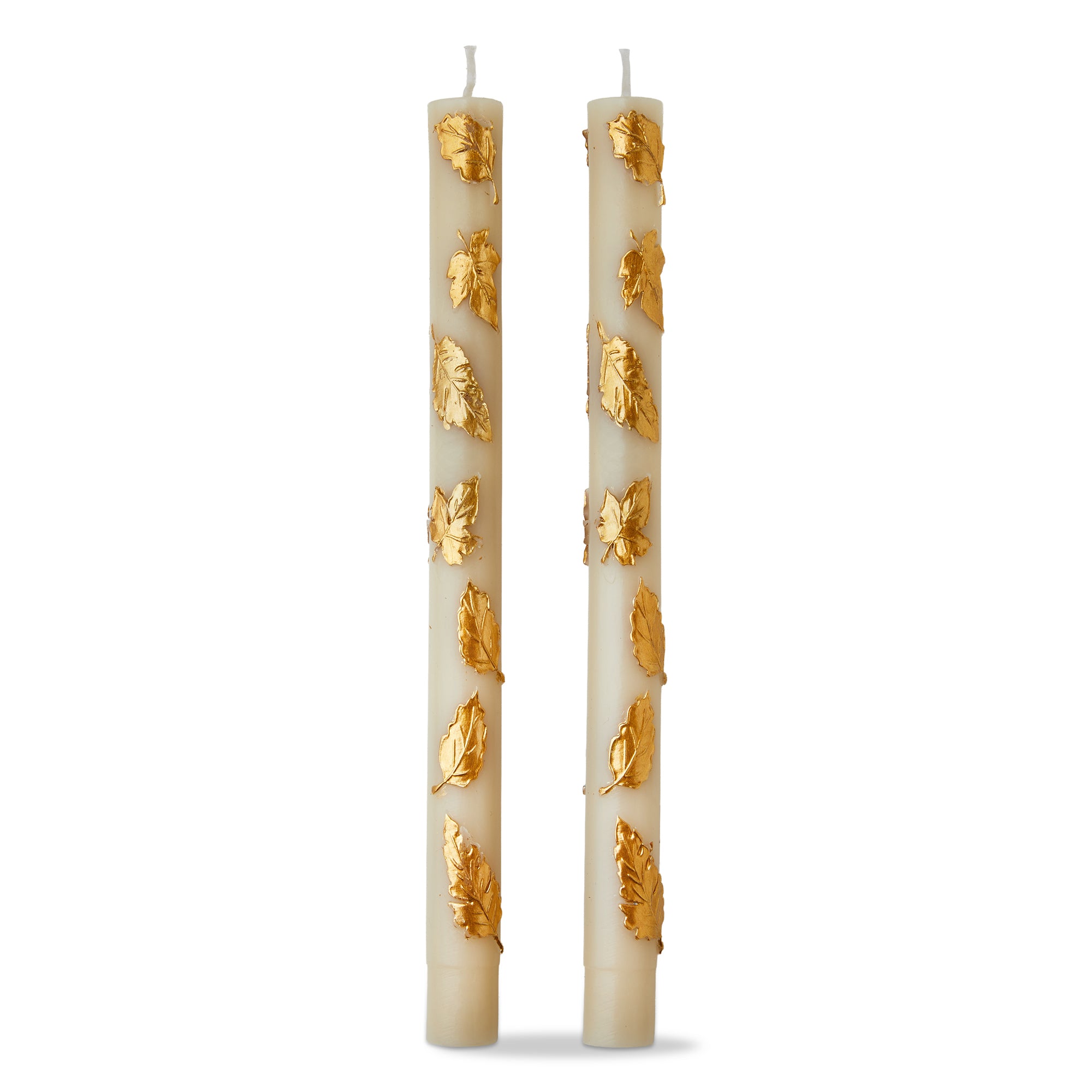 Set of fall leaves straight candles that bring warm autumn color and gentle glow to seasonal tablescapes or mantel displays. Hand painted details add warmth while its versatile design makes styling simple. Sized for layered displays and pairs beautifully with seasonal greenery and décor.