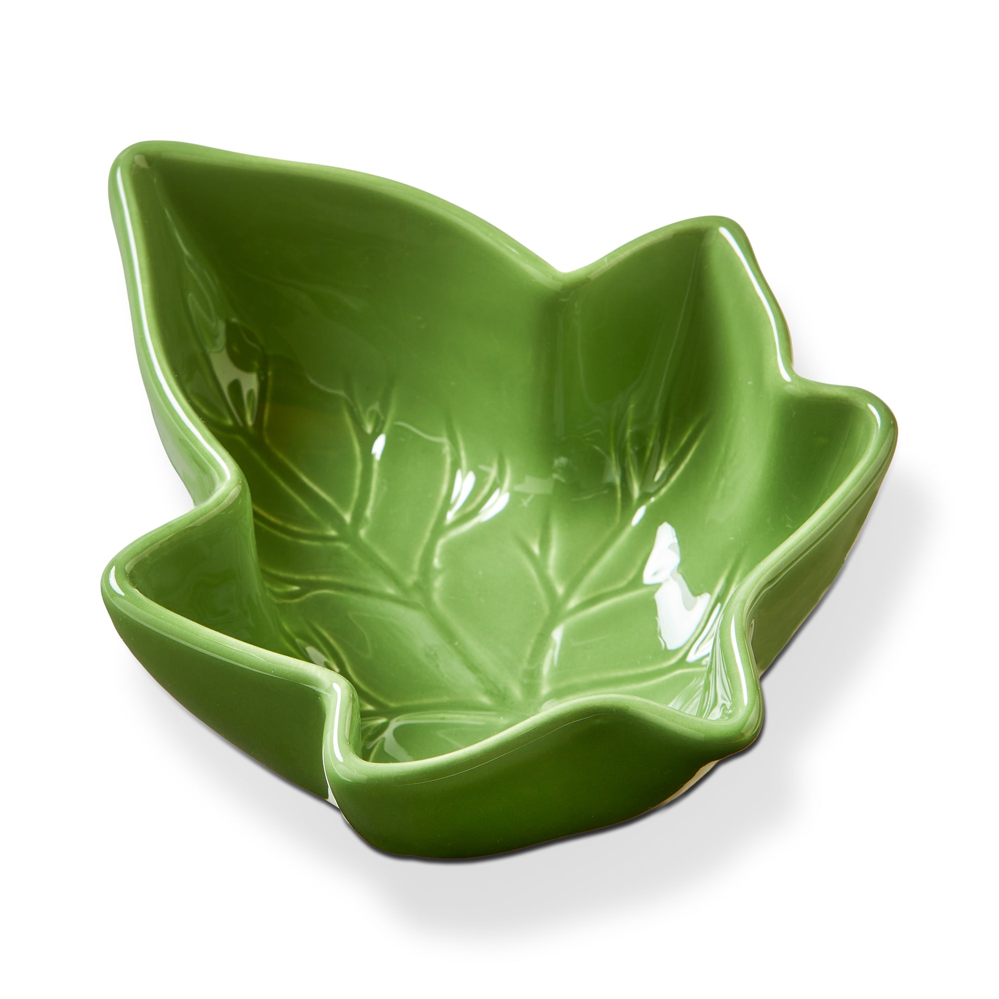 Large sculpted leaf bowl with a vivid green finish and organic shape. A standout harvest piece perfect for salads, sides, or decorative displays. Hand painted details add warmth while its versatile design makes styling simple. Sized for layered displays and pairs beautifully with seasonal greenery and décor.
