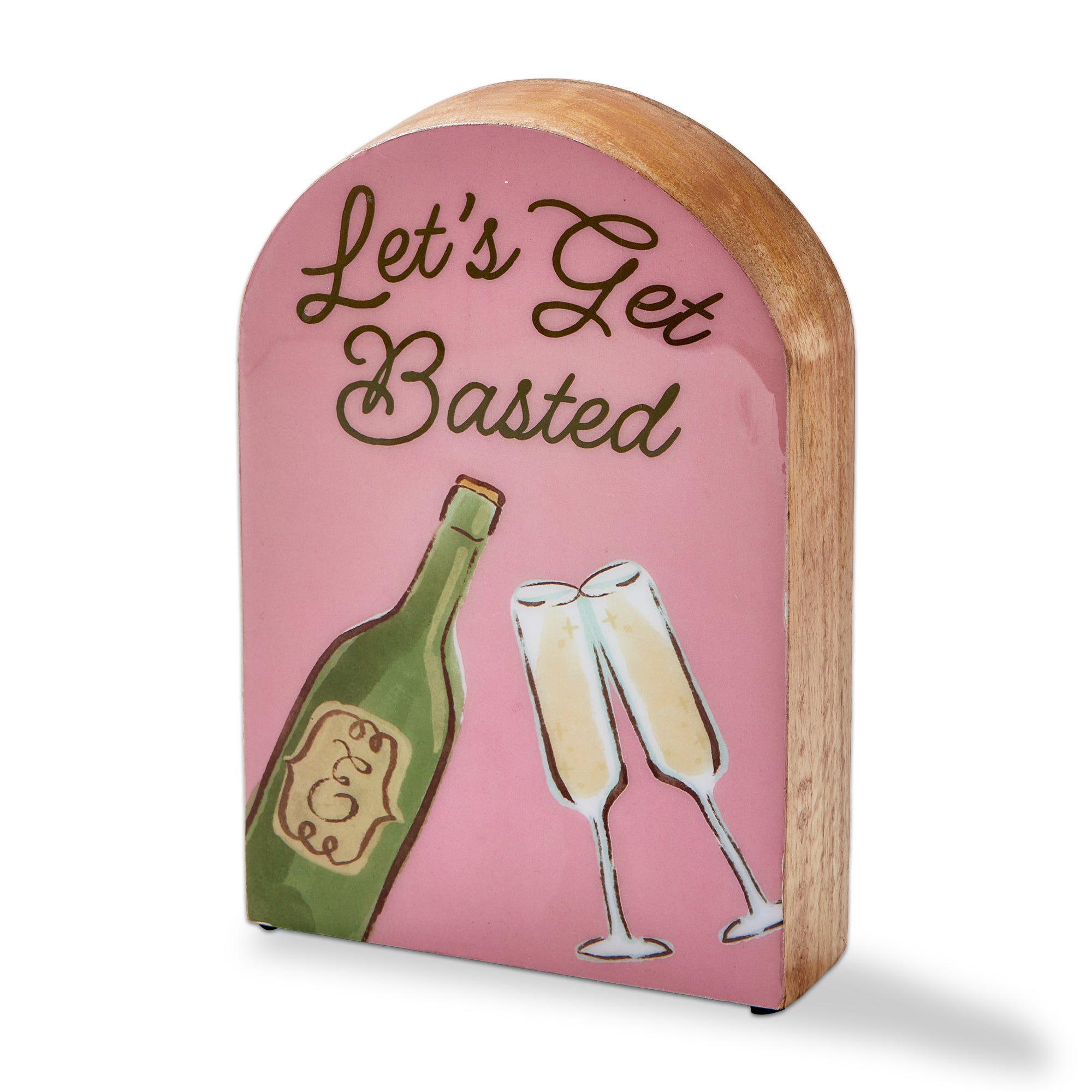 Say it with a smile. This enamel tabletop sign reads Lets Get Basted for playful kitchens and bar carts. Hand painted details add warmth while its versatile design makes styling simple. Sized for layered displays and pairs beautifully with seasonal greenery and décor.