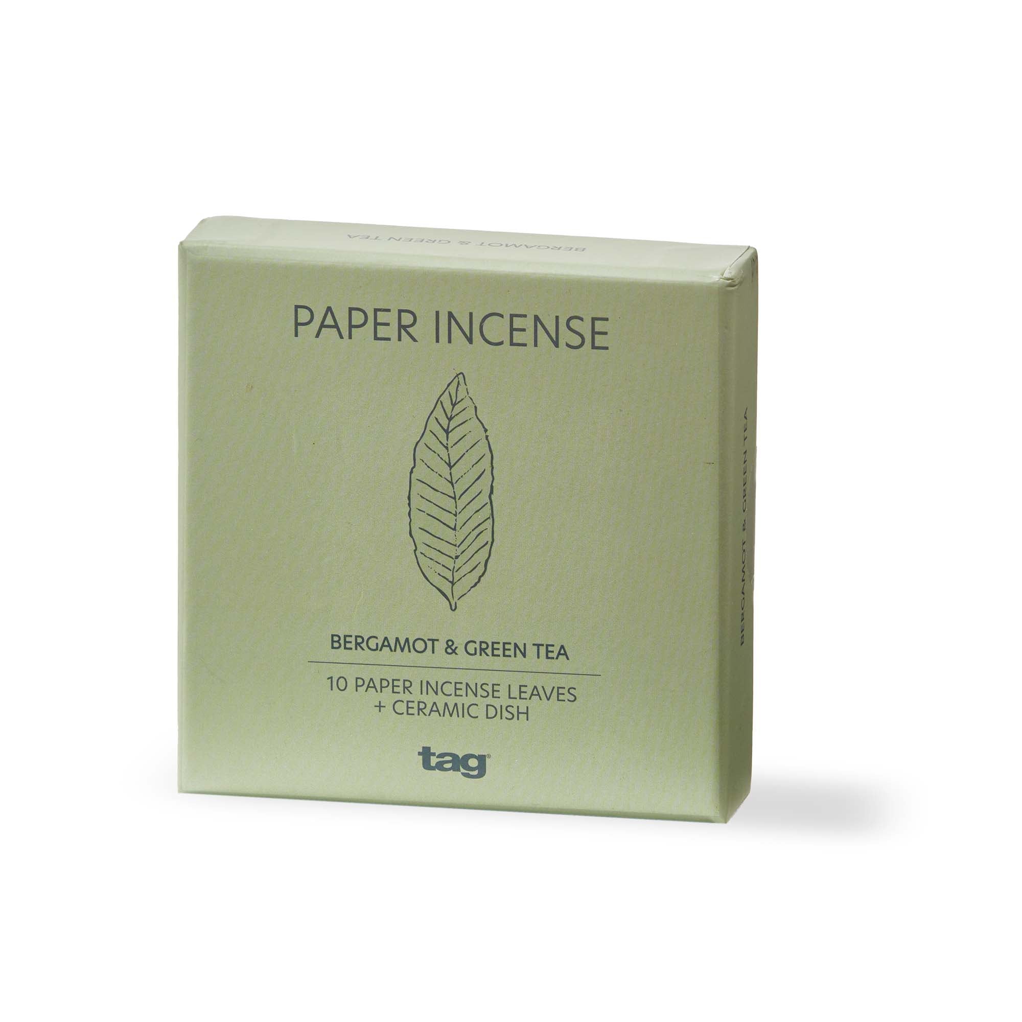 Unwind and rejuvenate with the bergamot & green tea paper incense set. this luxurious set features 10 paper incense pieces and a ceramic dish. light the paper incense tip and extinguish the flame to experience the invigorating citrus and green tea notes, or simply place the paper incense on the ceramic dish to enjoy it as a potpourri.