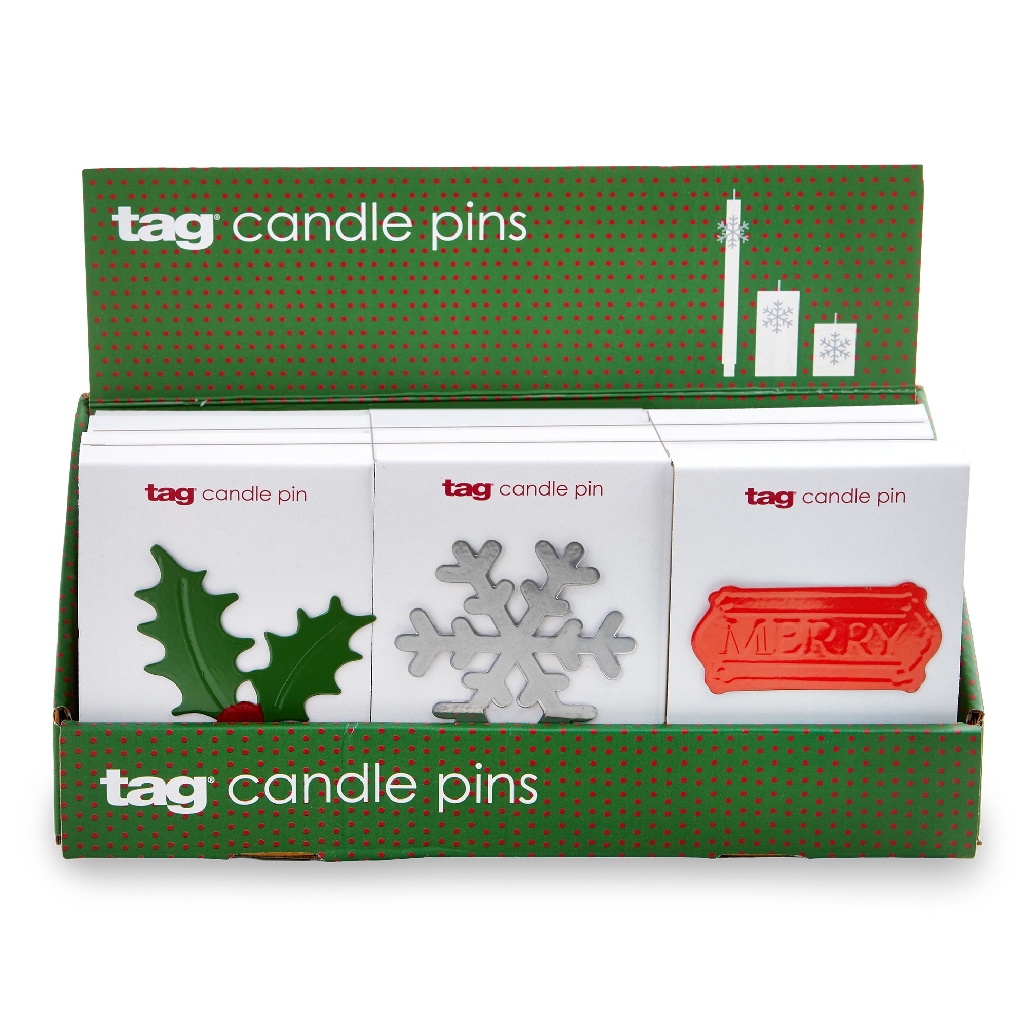 Christmas Candle Pin Assortment Of 12 & Cdu