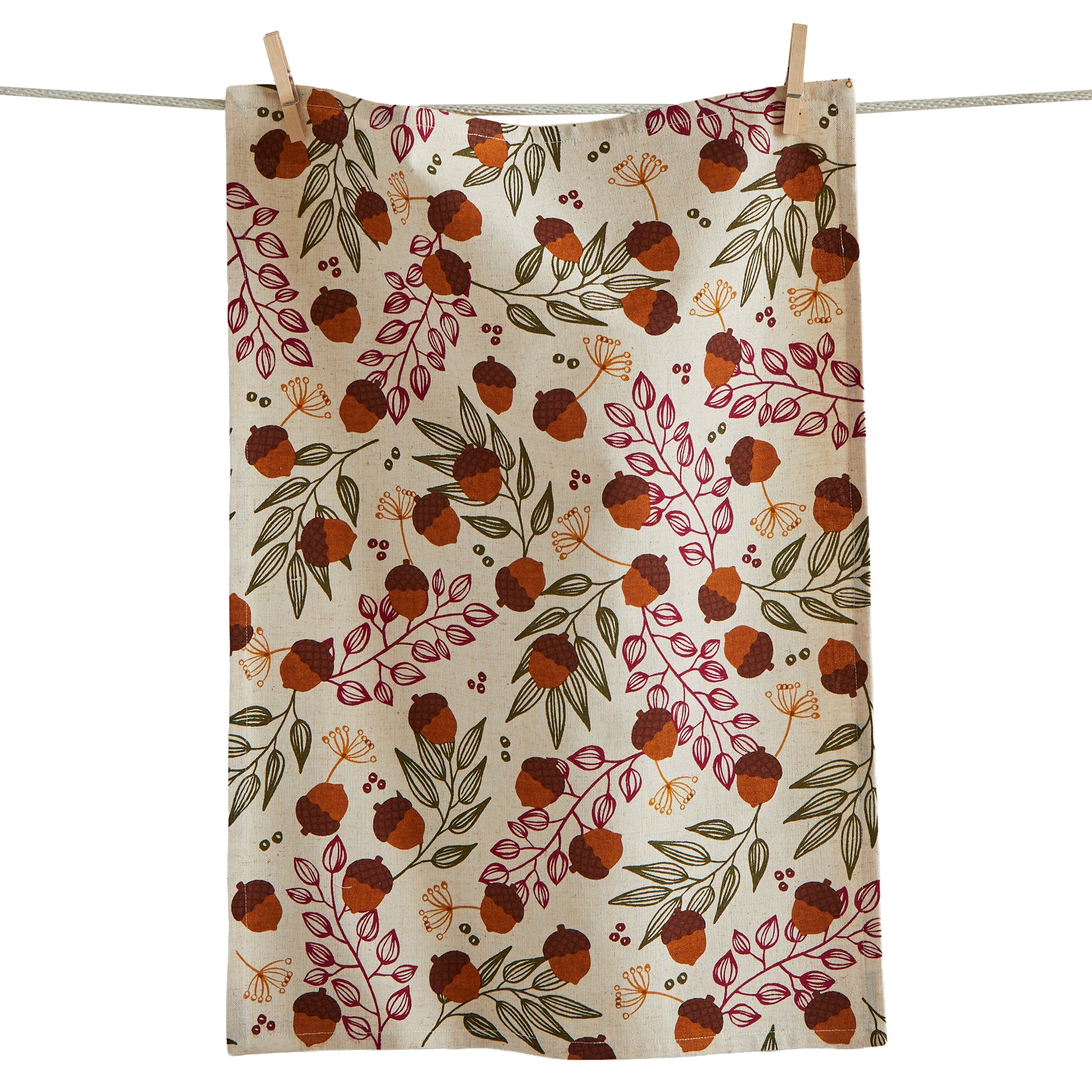 Acorn Harvest dishtowel features charming acorn art on a soft cotton linen blend adding a woodland note to fall cooking and cleanup. Hand painted details add warmth while its versatile design makes styling simple. Sized for layered displays and pairs beautifully with seasonal greenery and décor. View all items in Grace & Gratitude.
