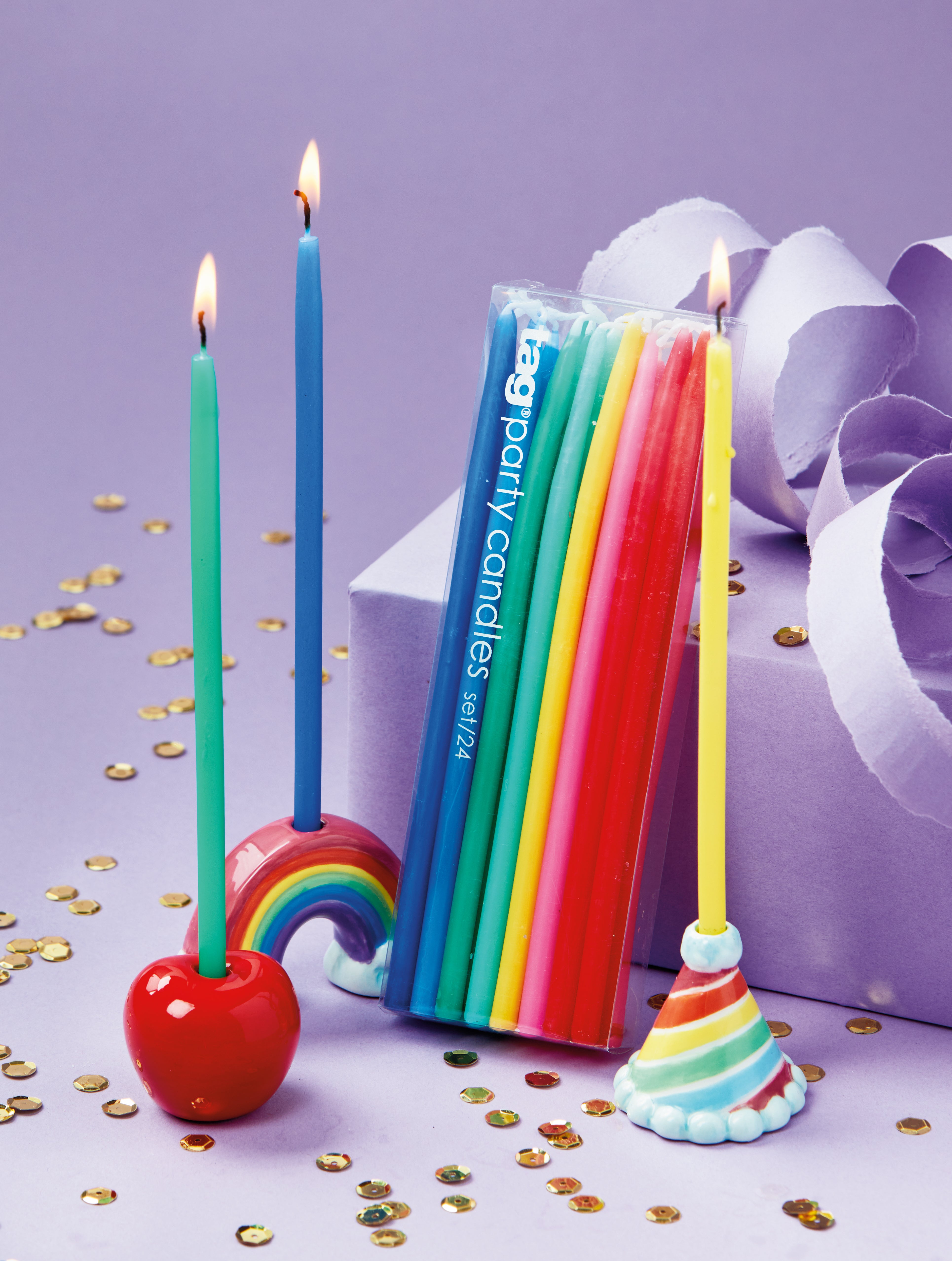 Celebrate that special occasion with a beautiful range of assorted colored mini taper candles. adds a touch of eye-catching flair to a variety of cakes and desserts. set includes 24 candles (3 each of 8 colors) that are hand-dipped. each candle features a cotton wick for a clean burn.