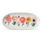 It's all in the details. spring and summer get-togethers call for bright colors and eye-catching designs. serve up your appetizers and hors d'oeuvres alongside beautiful, spring blooms with our bee blossom oval platter. made from earthenware, this platter features an organically shaped body with a decal design. this piece is finished with a glossy glaze.