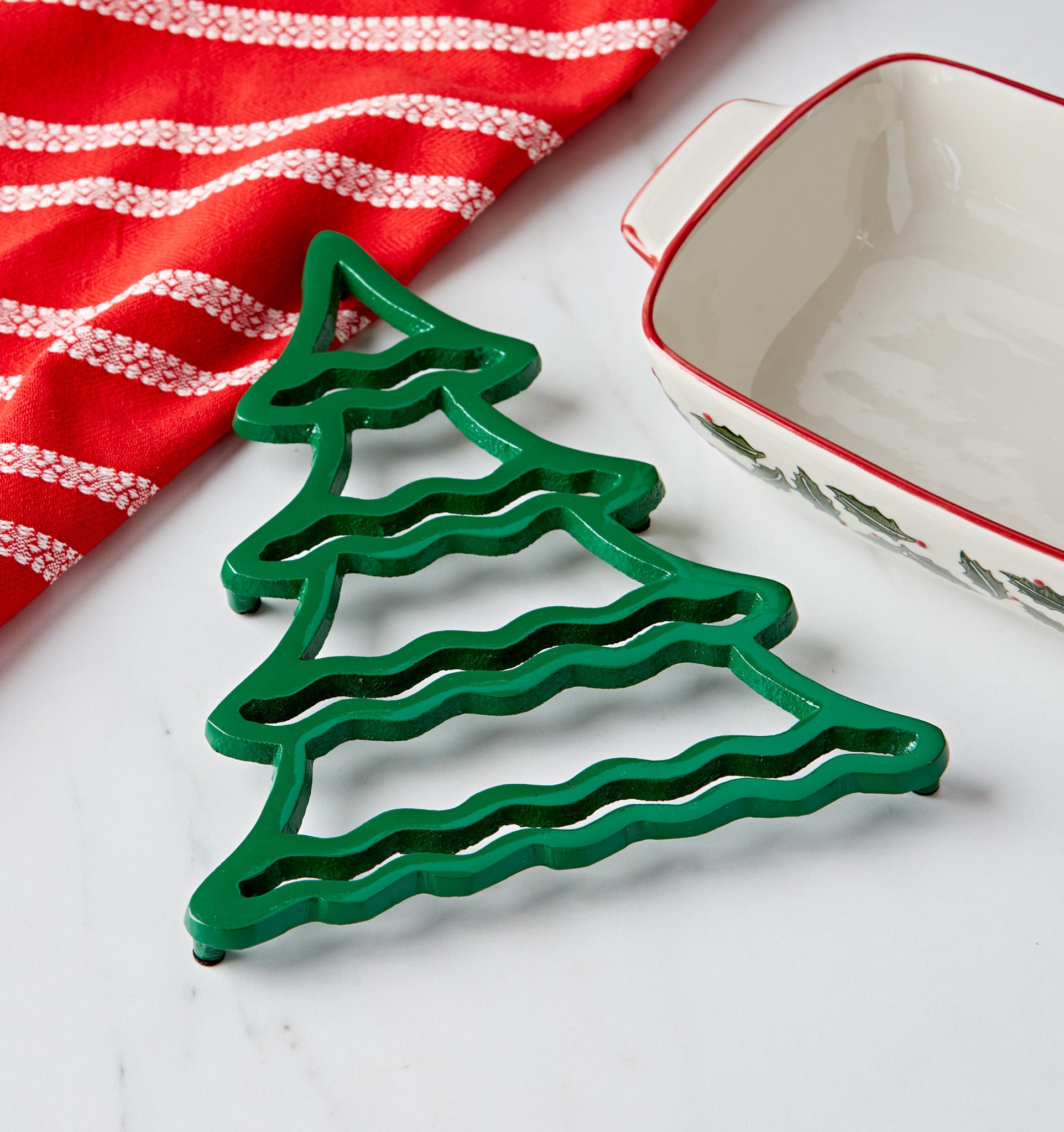 Brighten up your holiday table with this Cheerful Trivet. Made from cast aluminum, this trivet features a vibrant green color and the word "cheerful" in a stylish font.