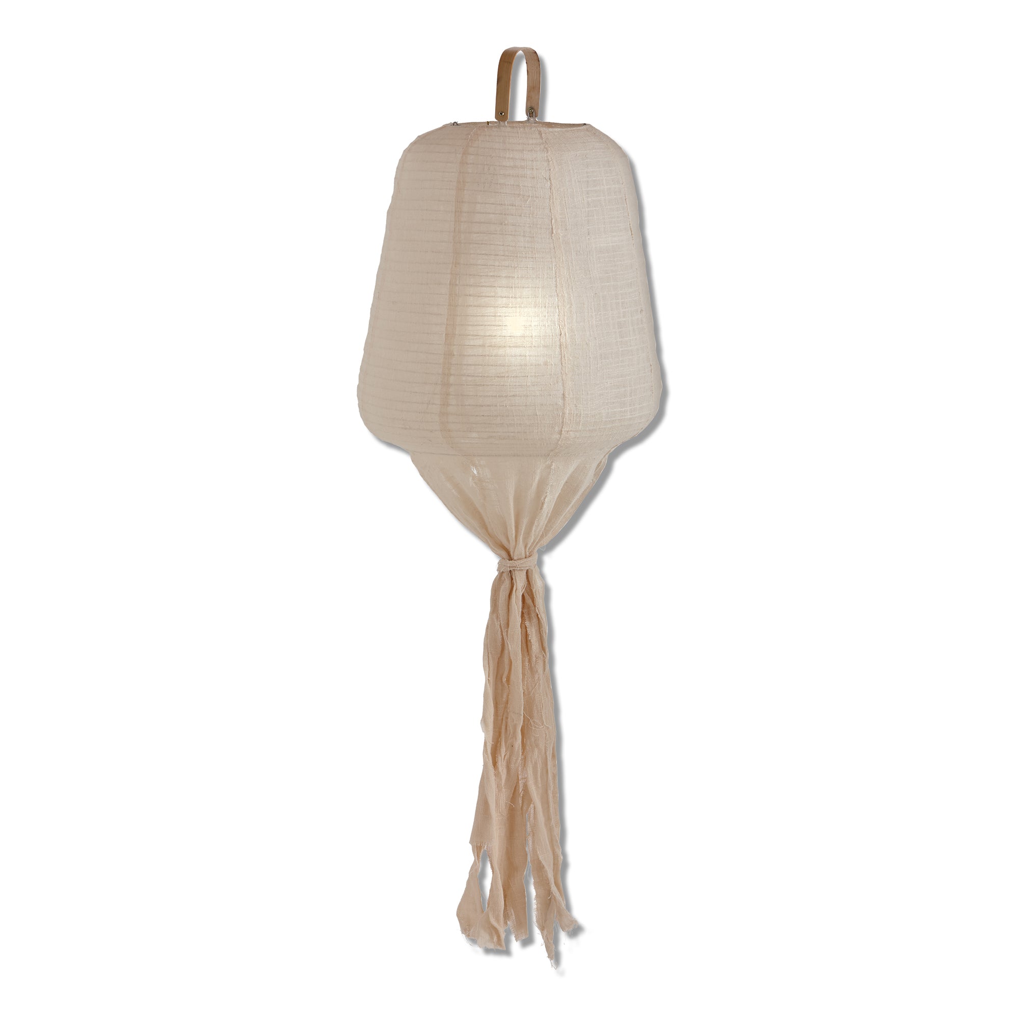 Natural style and glowing ambience for day and night is easily achieved with our cotton led pendant lanterns. natural cotton shades on a metal wire frame are suspended from a jute rope. included remote control makes it easy to hang and enjoy. batteries included.