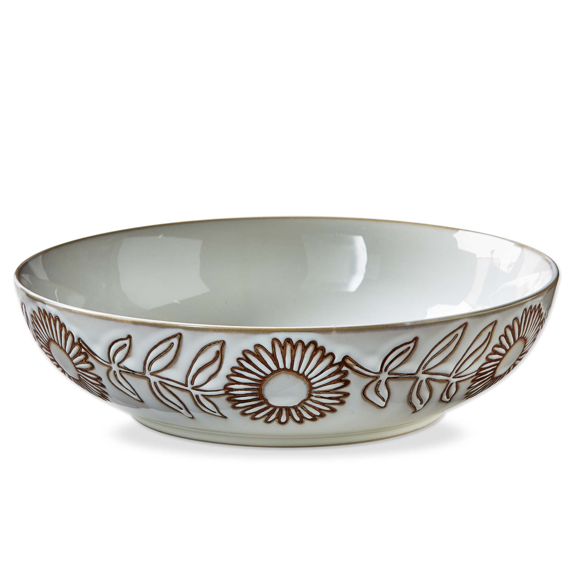 Crafted from antique white stoneware, this bowl features a beautiful reactive glaze that creates unique variations in color. delicate lavender and honey designs are hand-painted using a wax resist technique, adding a touch of whimsical elegance. dishwasher safe for easy cleaning.