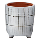 Are you one of many who has expanded your plant family in the age of social distancing? why not showcase those beauties in something artful and talk-worthy? this linear planter with feet is made of terracotta. handmade and handpainted. includes a drain hole with silicone plug and fits a 4.5" drop in plant. as water can permeate through terracotta, display with dry plants and botanicals or on its own.