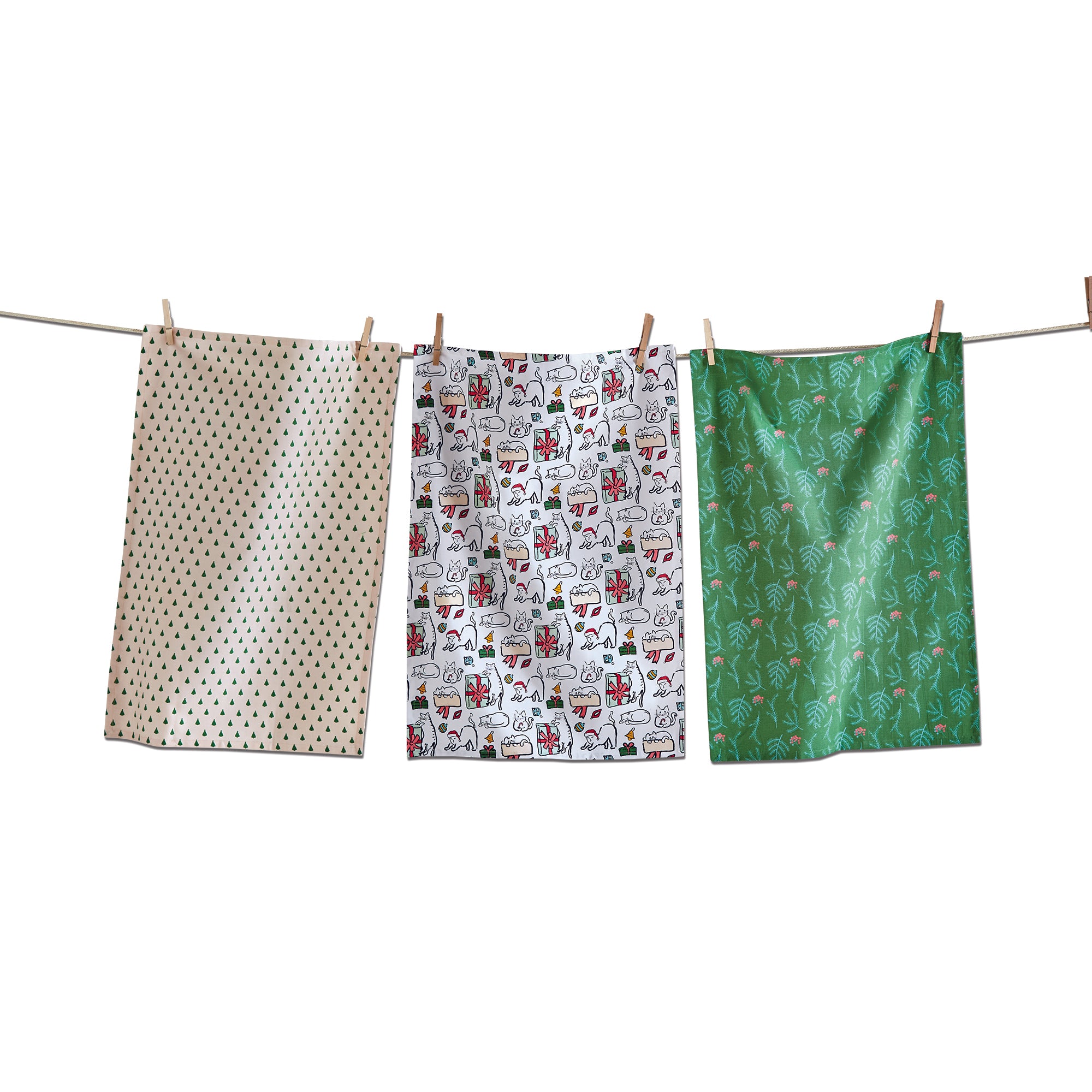 Meet our kitchen mvp and a customer favorite for over 45 years! dishtowels have been a core product of tag since 1975. the merry catmas holiday dishtowel set of 3. hand screen printed cotton dishtowels with hang loop. 100% cotton, making them extra absorbent for drying dishes. excellent for gifting or as additions to your kitchen household cleaning essentials.
