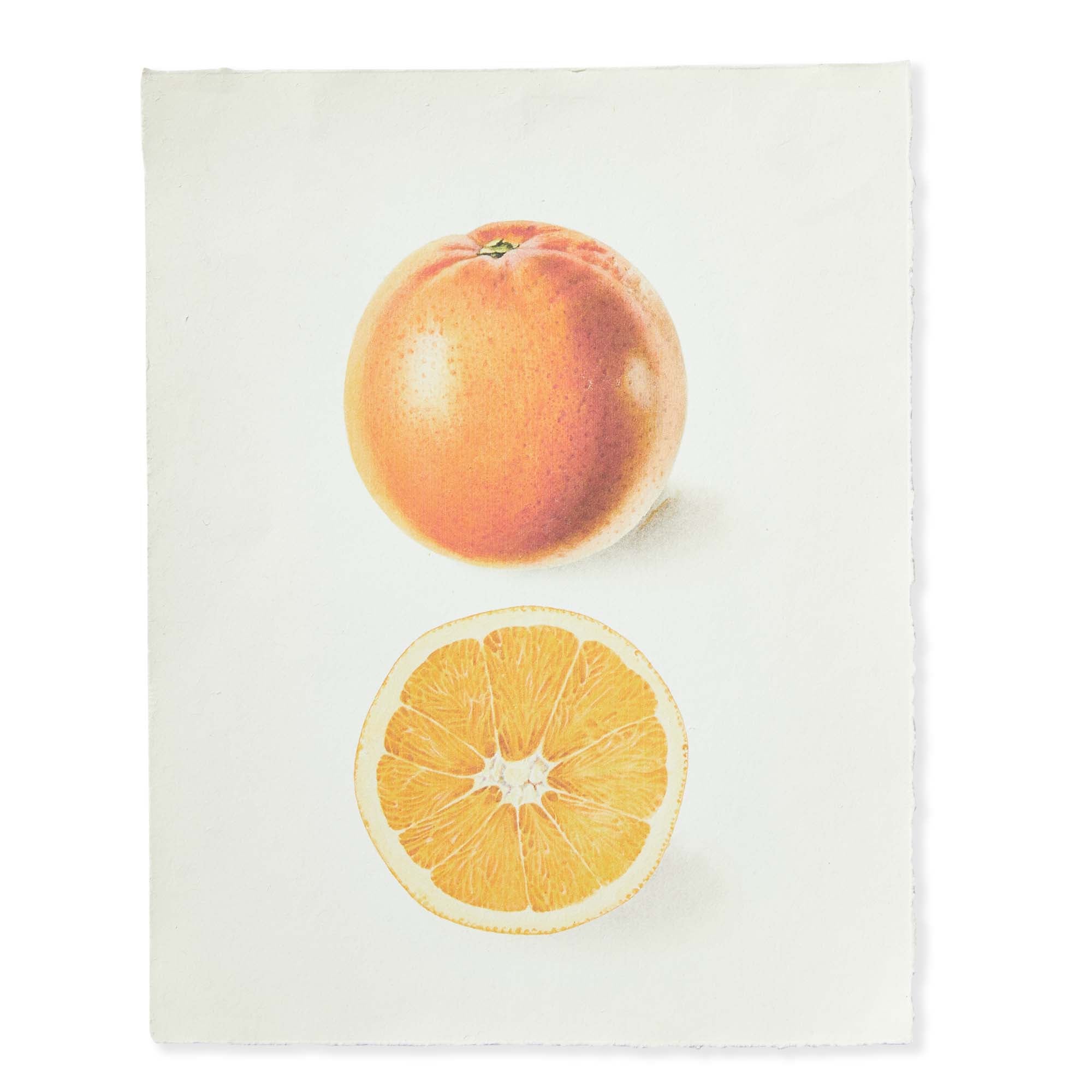 Brighten up your space with this vibrant orange print. Printed on handmade paper made from upcycled cotton, this print features a beautiful image of a cut orange.