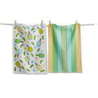 This set of two cotton dishtowels includes one with a fun pickleball print and another with stylish woven stripes, both featuring handy hang loops. A great pick for pickleball enthusiasts!