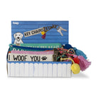 Pawsitively adorable. each keychain is easy to attach to keys and key rings. made of cotton and iron with an antique metal finish. cdu includes 18 pieces total. 3 each of 6 designs. perfect to gift the dog lovers in your life!