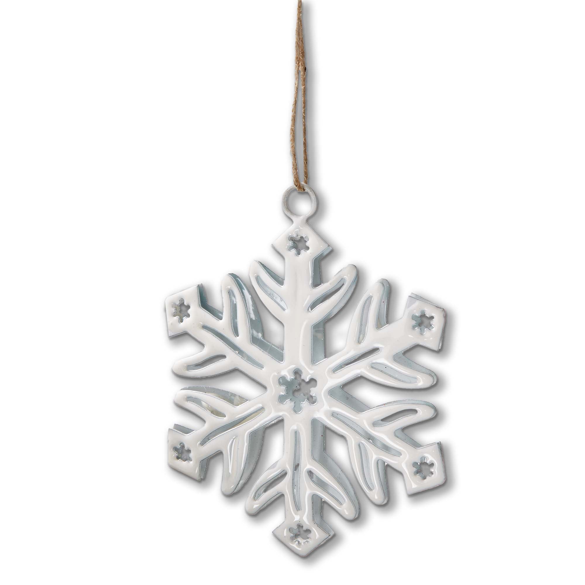 Add a touch of winter magic to your Christmas tree with this delicate Snowflake Enamel Ornament. Crafted from 100% iron with a white enamel finish, this ornament features an intricate snowflake design, perfect for adding a touch of elegance to your holiday decor.