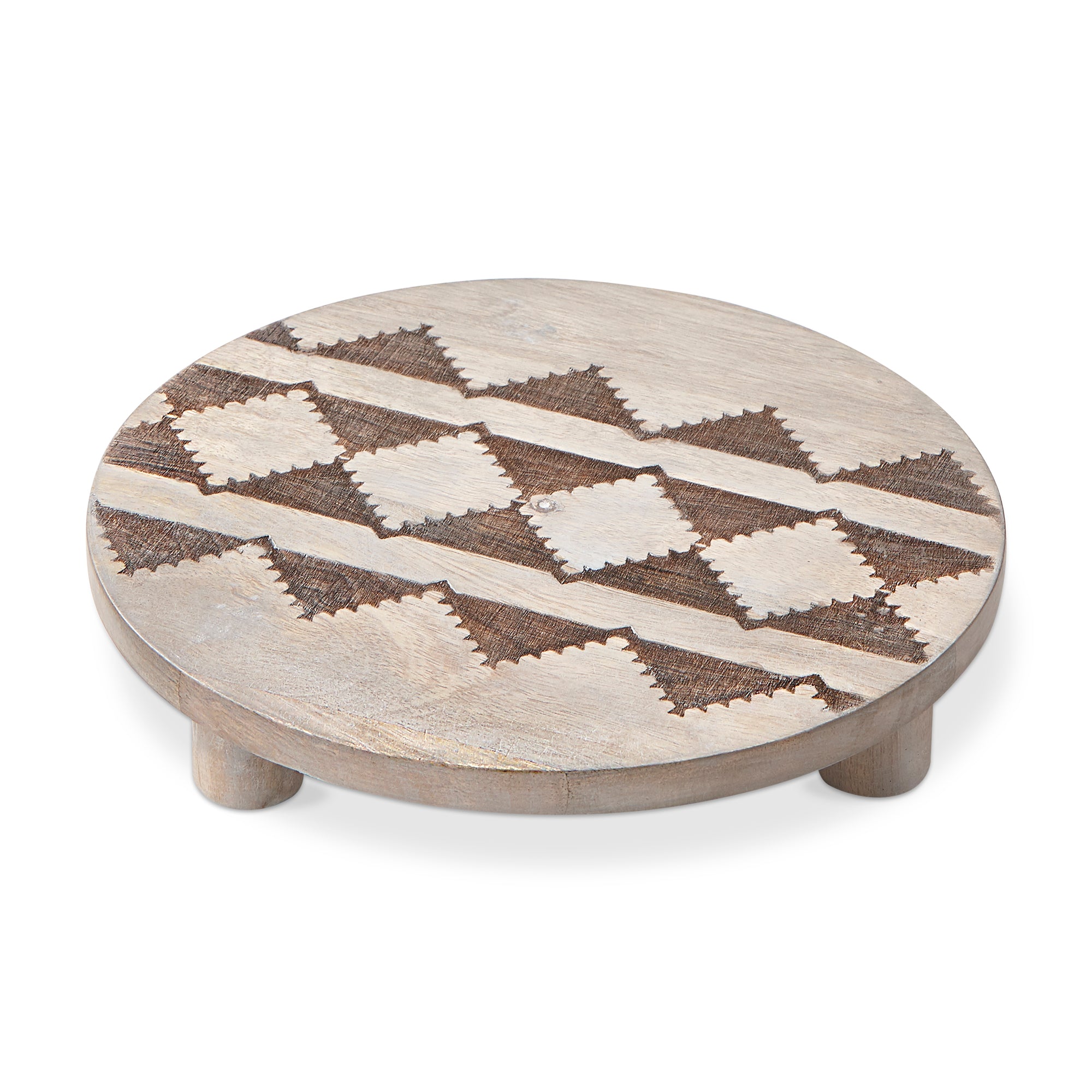 Add a beautiful touch to your entertaining essentials with this gorgeous, artisan-made table riser. Entertain with style, or use to spruce up counter space and display kitchen accessories. Features gorgeous burn design and mango wood construction. Extremely versatile. Apply mineral oil to wood to maintain a nice wood surface and keep from drying out. Slight variations are to be expected—each piece is one-of-a-kind, no two pieces will be exactly alike.
